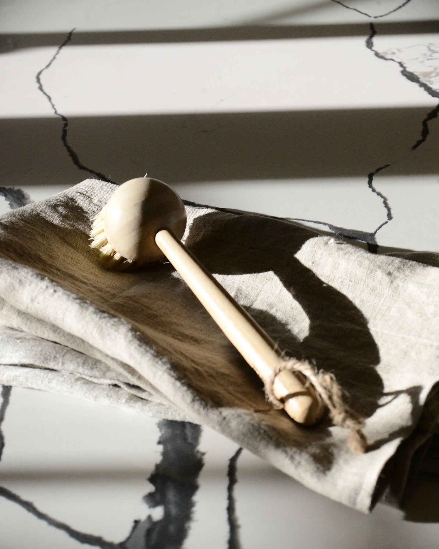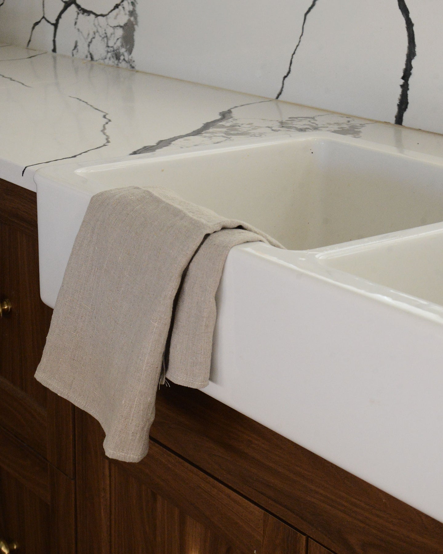 Albertine is made with 100% linen. Using linen is not only preferred for its beauty, but its absorbency and durability as well. Your linen dish towel will only get better with age.